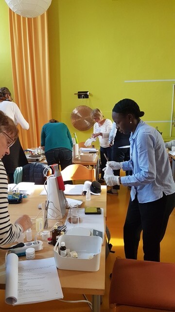 Jede Gruppe wird dann nacheinander mit den unterschiedlichsten Destillen arbeiten. So findet jeder Teilnehmer die für ihn am besten geeignete Destillenform zur Herstellung seiner eigenen Pflanzenwässer!