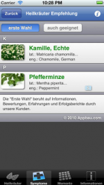 | PhytoApp – Heilpflanzenwissen von Ursel Bühring, Gründerin und Dozentin an der Freiburger Heilpflanzenschule veröffentlicht am 26.11.2013 kompatibel mit iPhone, iPad, iPod touch, Android und als Web-App mit dem PC Preis: 5,99 Euro |